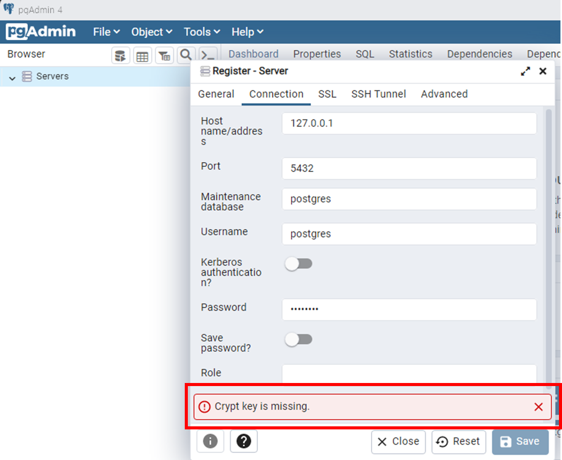 [pgadmin] Crypt key is missing (0) | 2022.12.17 |